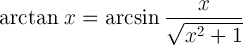 arctan α - arctan β = arctan [( α - β ) / (1+ αβ )] |