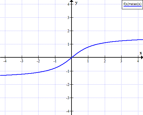 Арктангенс x визначається як обернена дотична функція x, коли x дійсне (x ∈ℝ ).